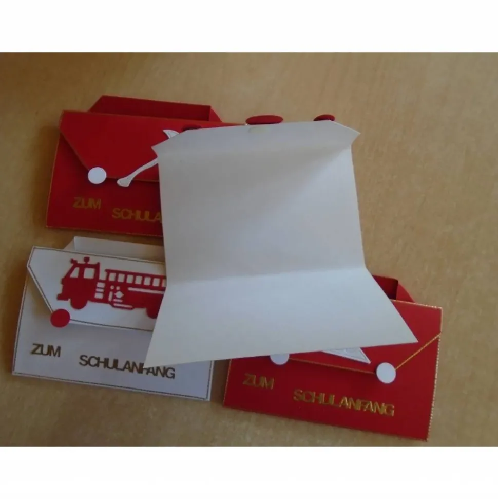 diese Karte Einschulung/Schulanfang habe ich als Einladungskarten und in der Form eines Schulranzen mit Feuerwehr motiven gefertigt..