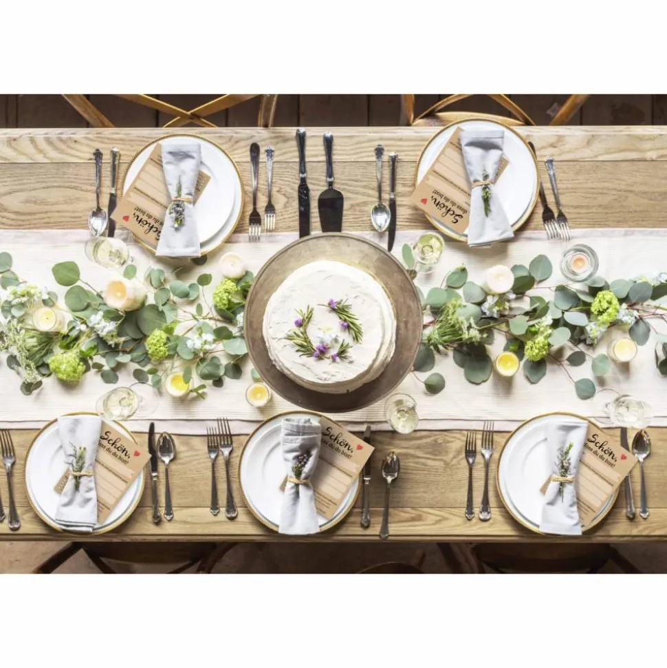 Wenn Sie die Karte vorab mit Namen beschriften ist es nicht nur eine schöne Tischdeko, sondern gleichzeitig eine Platzkarte für den Hochzeitsgast.