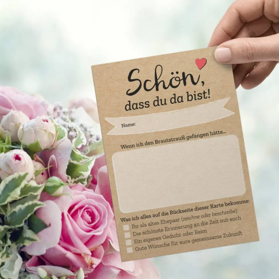 3. Die Karten entweder nach dem Hochzeitsspiel wieder einsammeln und selbst wöchentlich an das Brautpaar schicken
