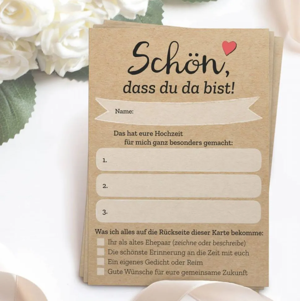 So funktioniert das Hochzeitsspiel mit den 52 „Schön, dass du da bist“-Karten: