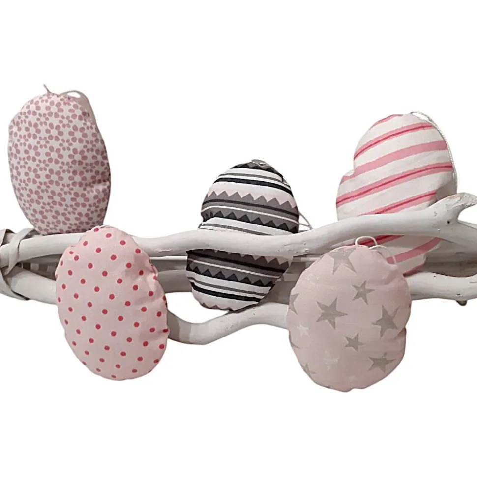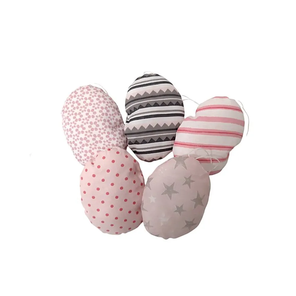 Süße Stoffostereier aus Baumwolle zum Aufhängen. Tolle Oster- und Frühlingsdeko, die überall ihr Plätzchen finden.
