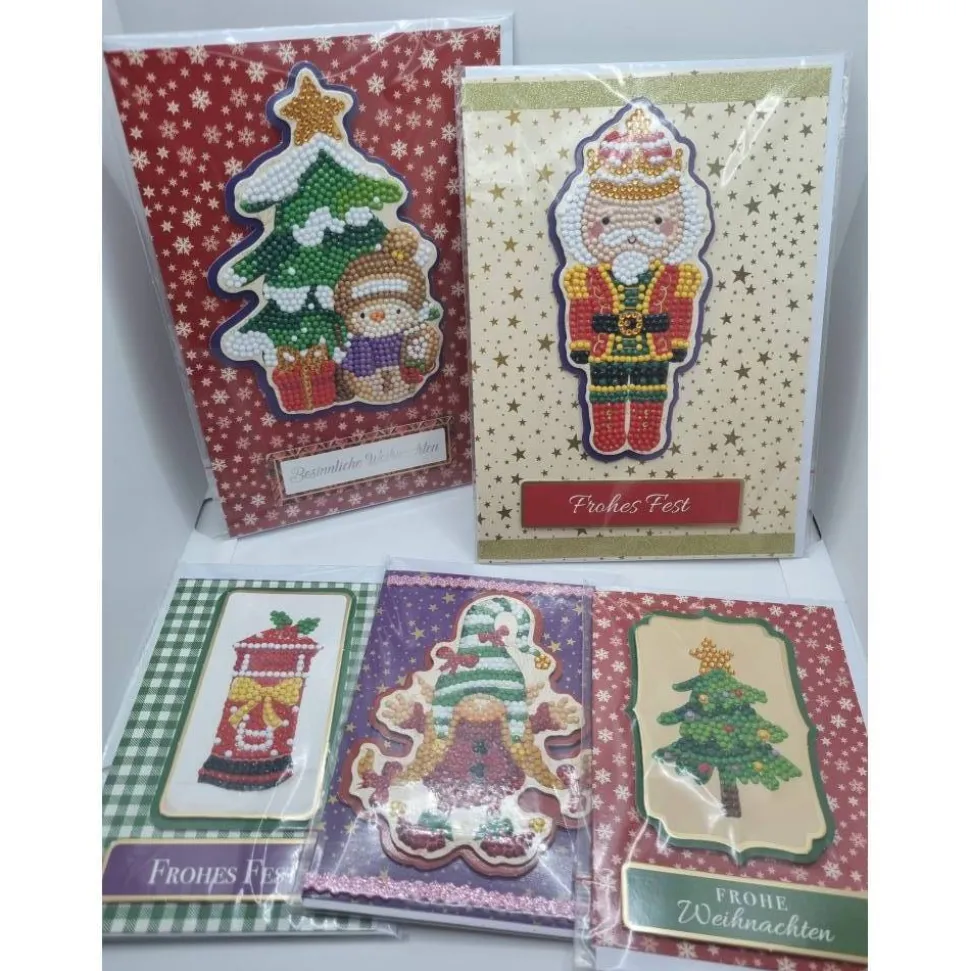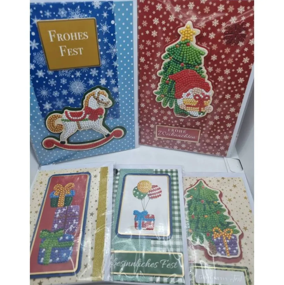 Entdecke ein exklusives 5er Set handgearbeiteter Weihnachtsgrußkarten mit funkelnden Diamond Painting Motiven!