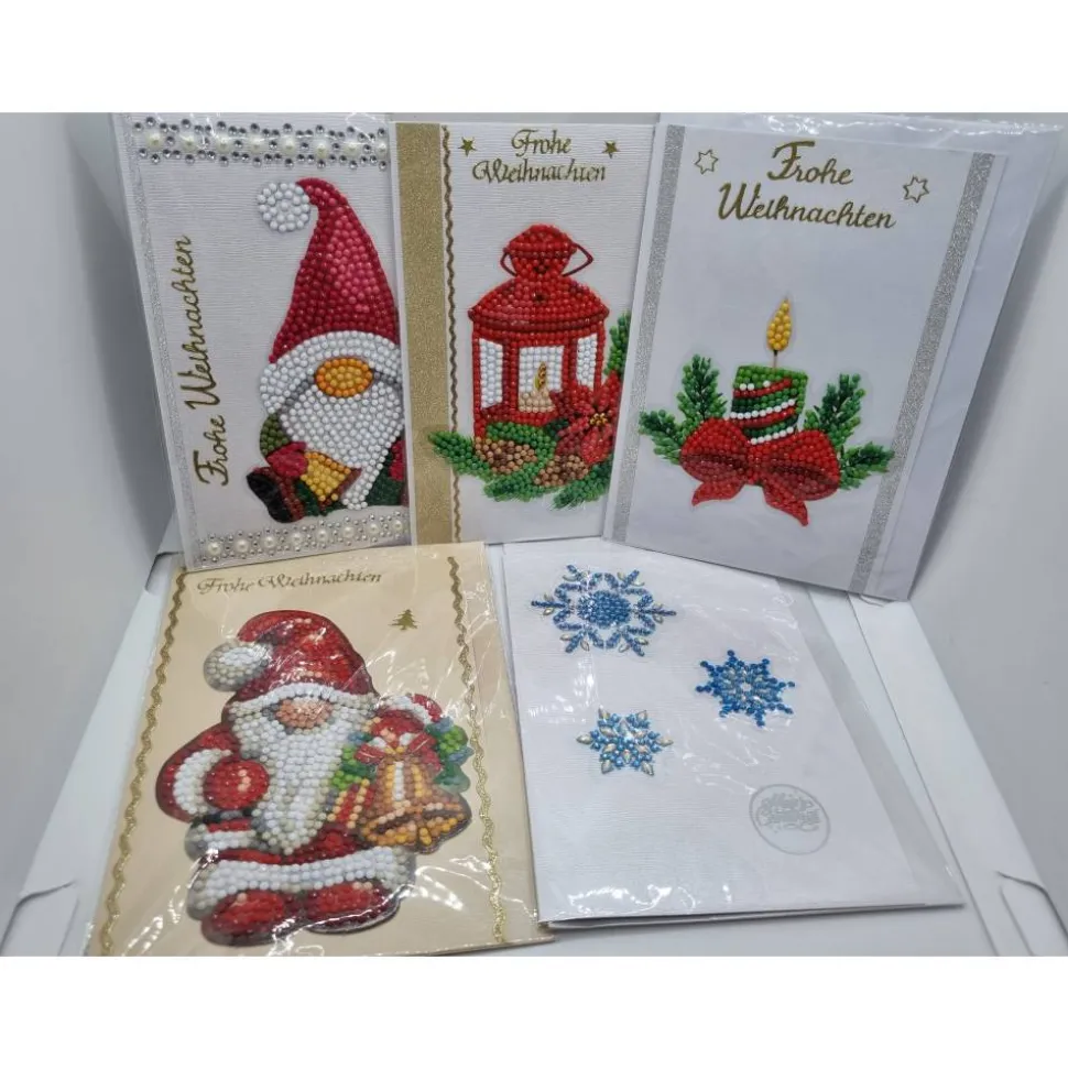 Entdecke ein exklusives 5er Set handgearbeiteter Weihnachtsgrußkarten mit funkelnden Diamond Painting Motiven!