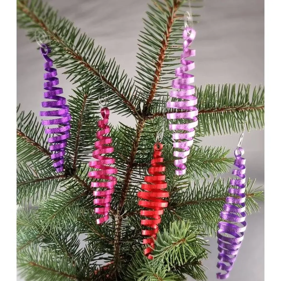 Die Zapfen sind ca. 13-15 cm lang und ca. 3 cm im Durchmesser, an der breitesten Stelle. Das Set besteht aus je einem Zapfen in den Farben: Rosa, Rot, Pink, Hell- und Dunkellila.