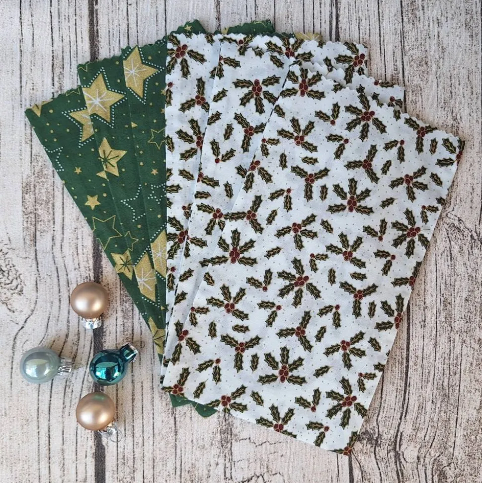 Maße der Säckchen: je ca. 11 x 19 cm da Handzuschnitt, 100 % Baumwolle