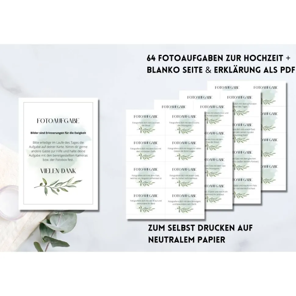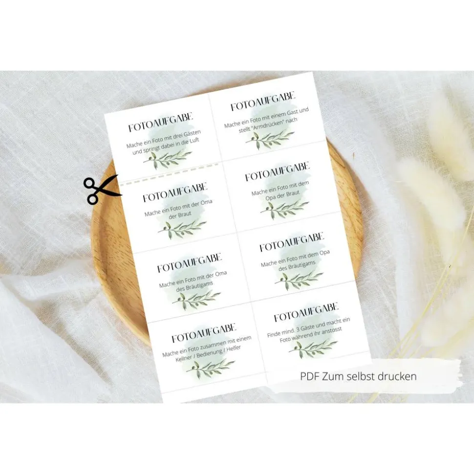 Du planst gerade deine Hochzeit oder du möchtest eine Überraschung für das Brautpaar vorbereiten? Mit dieser PDF Vorlage hast du ganz schnell tolle Karten für Fotoaufgaben bzw. ein Fotospiel basteln. Einfach auf dickem weißen Papier oder auch Kraftpapier / bunten Papier ausdrucken, schneiden und FERTIG !!!
