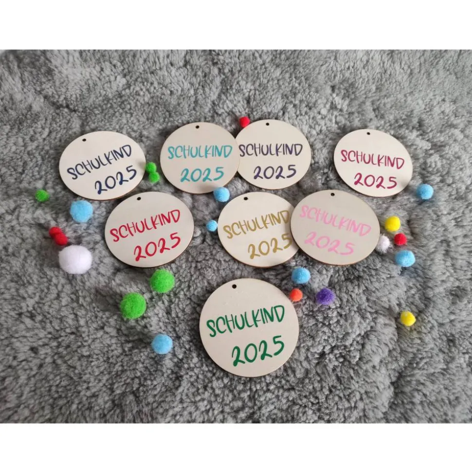 Sie sind ca. 7,5cm groß und haben ein Loch zum Einfachen anbringen an die Schultüte.