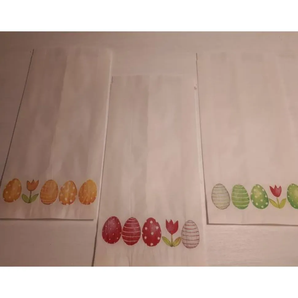 auf der Vorderseite sind sie liebevoll mit bunten Ostereiern und Tulpen in Serviettentechnik verziert …