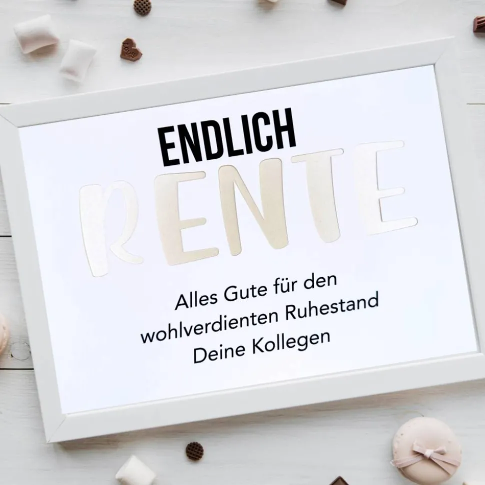 ▫ Kurzer Wunschtext unter dem Motiv möglich (z. B. „Alles Gute zum Ruhestand“ oder mit den Namen der Gratulanten)