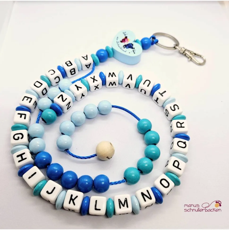 ABC-Rechenkette mit Motivherz "Ich bin ein Schulkind" in Mittelblau, Babyblau und Türkis