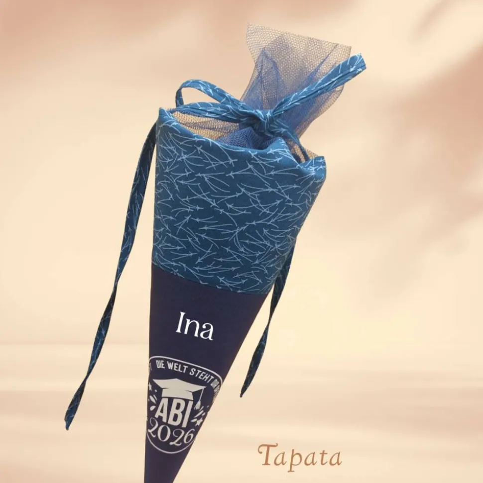 Angeboten wird eine kleine Schultüte mit einem passenden Spruch zum Abschluss(Abitur, Matura, Hochschulreife).