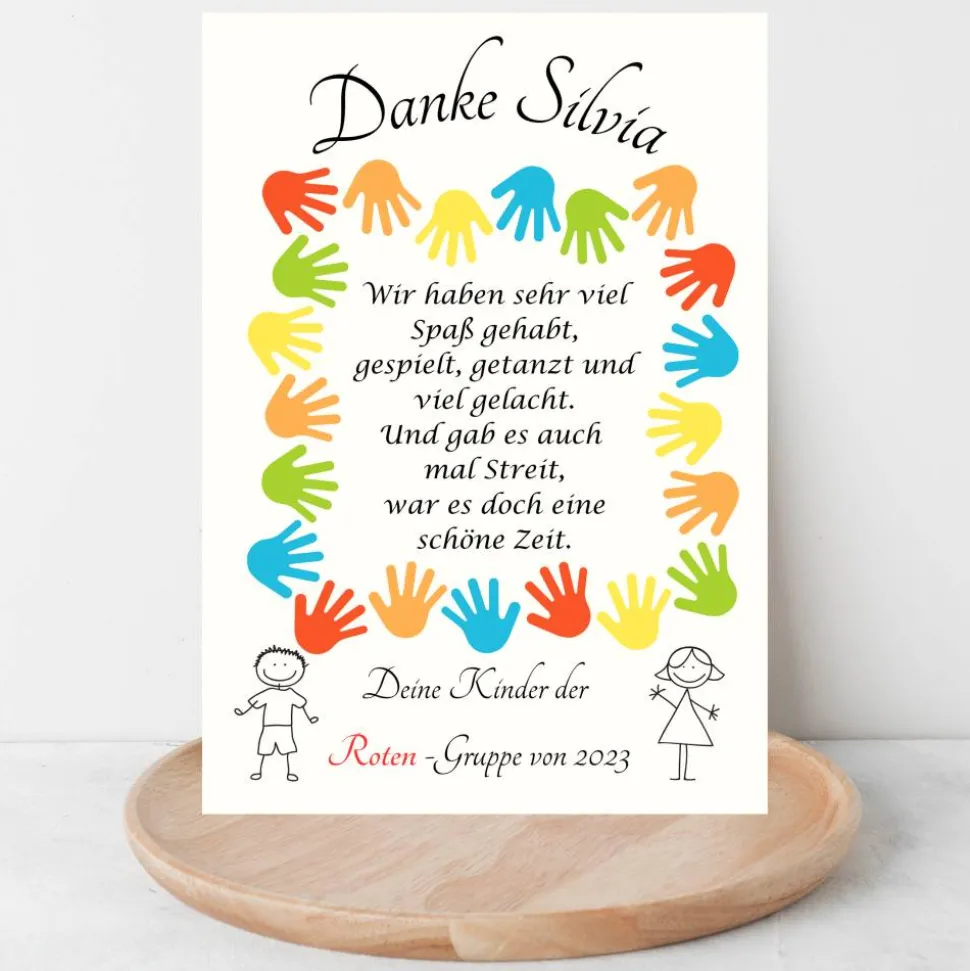 Für die Kindergärtnerin als Urkunde oder Poster zum Einrahmen als Wanddekoration und Geschenkidee.