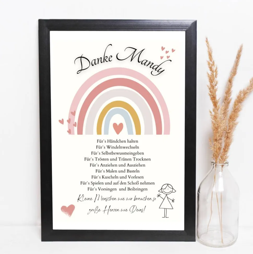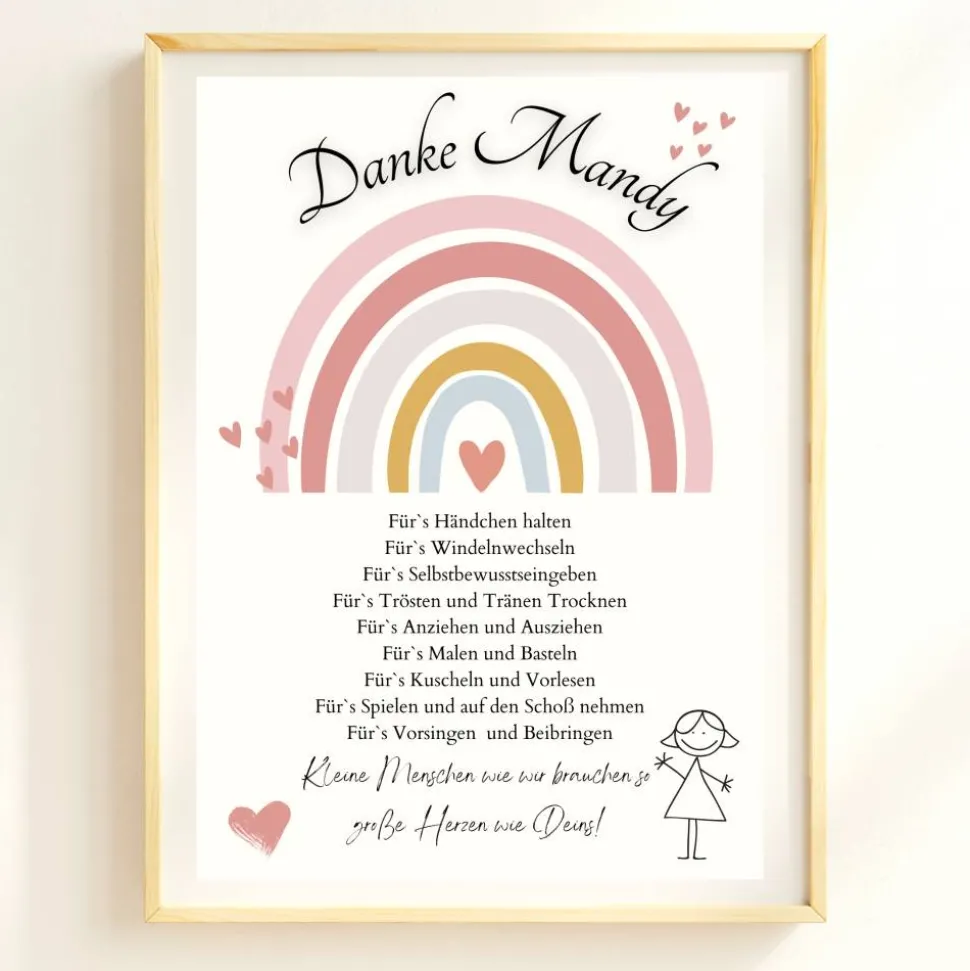 Für die Kindergärtnerin als Urkunde oder Poster zum Einrahmen als Wanddekoration und Geschenkidee.