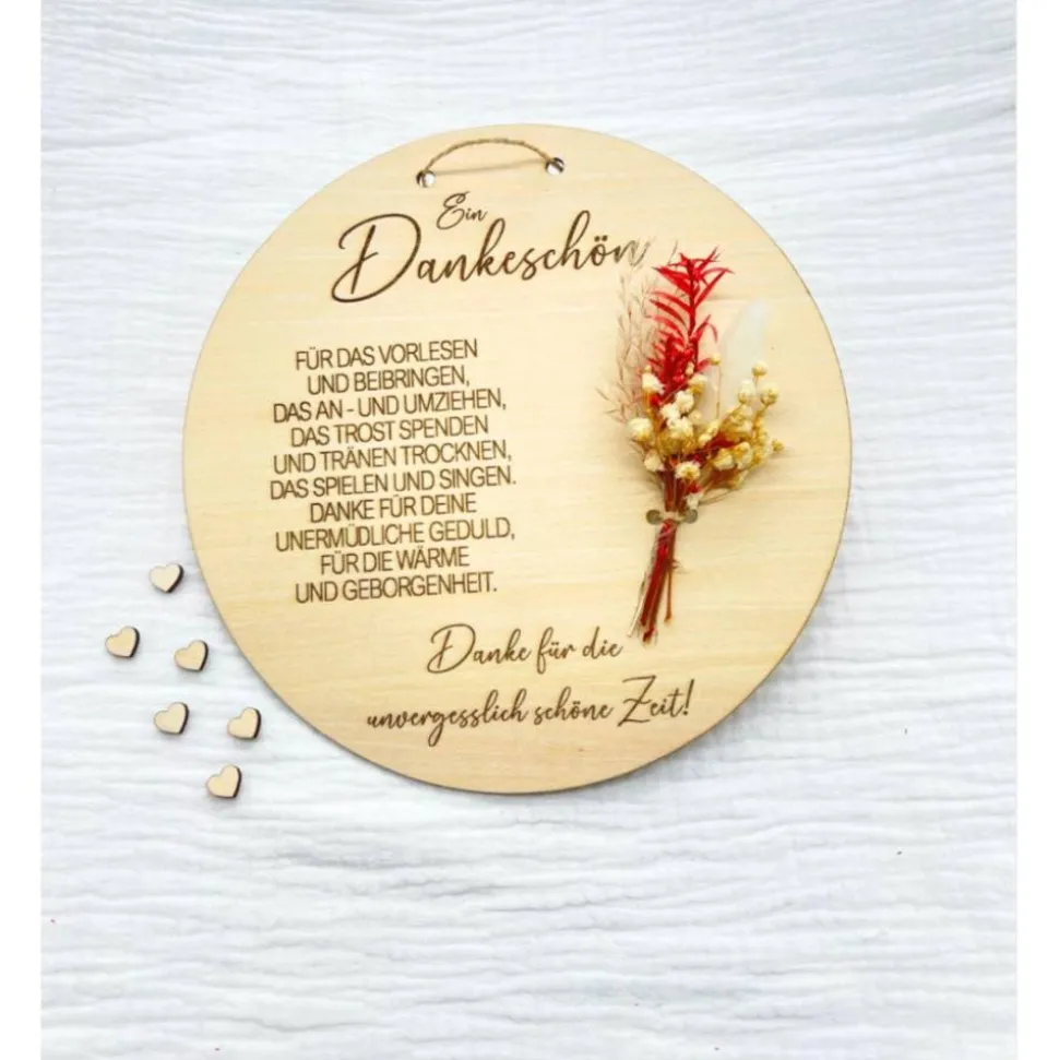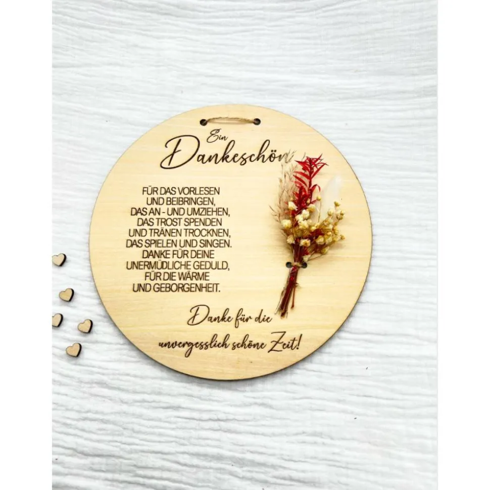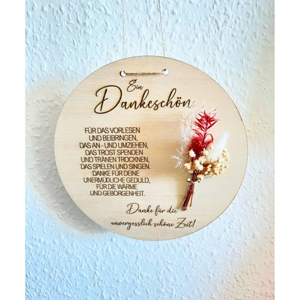 ❤️Ob zum Kindergartenabschluss, als Weihnachtsgeschenk oder einfach als liebevolles Dankeschön zwischendurch – diese dekorative Holzscheibe mit Spruch und Trockenblumen ist ein Geschenk, das von Herzen kommt und lange Freude bereitet.