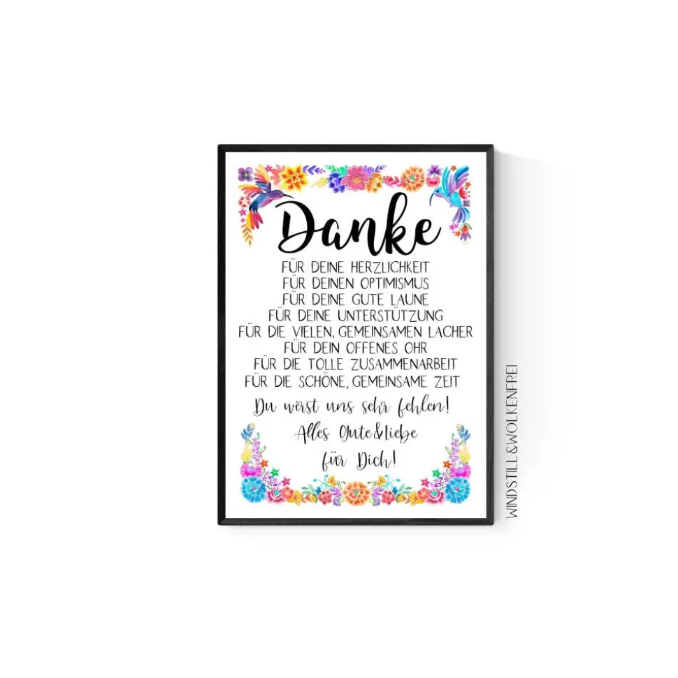 Es gibt kaum ein schöneres Dankeschön in Worte! Das Angebot bezieht sich auf das Poster. (es wird ohne Rahmen und Passepartout geliefert!) Der Druck wird in einem Vollkartonumschlag sicher an Dich verschickt.