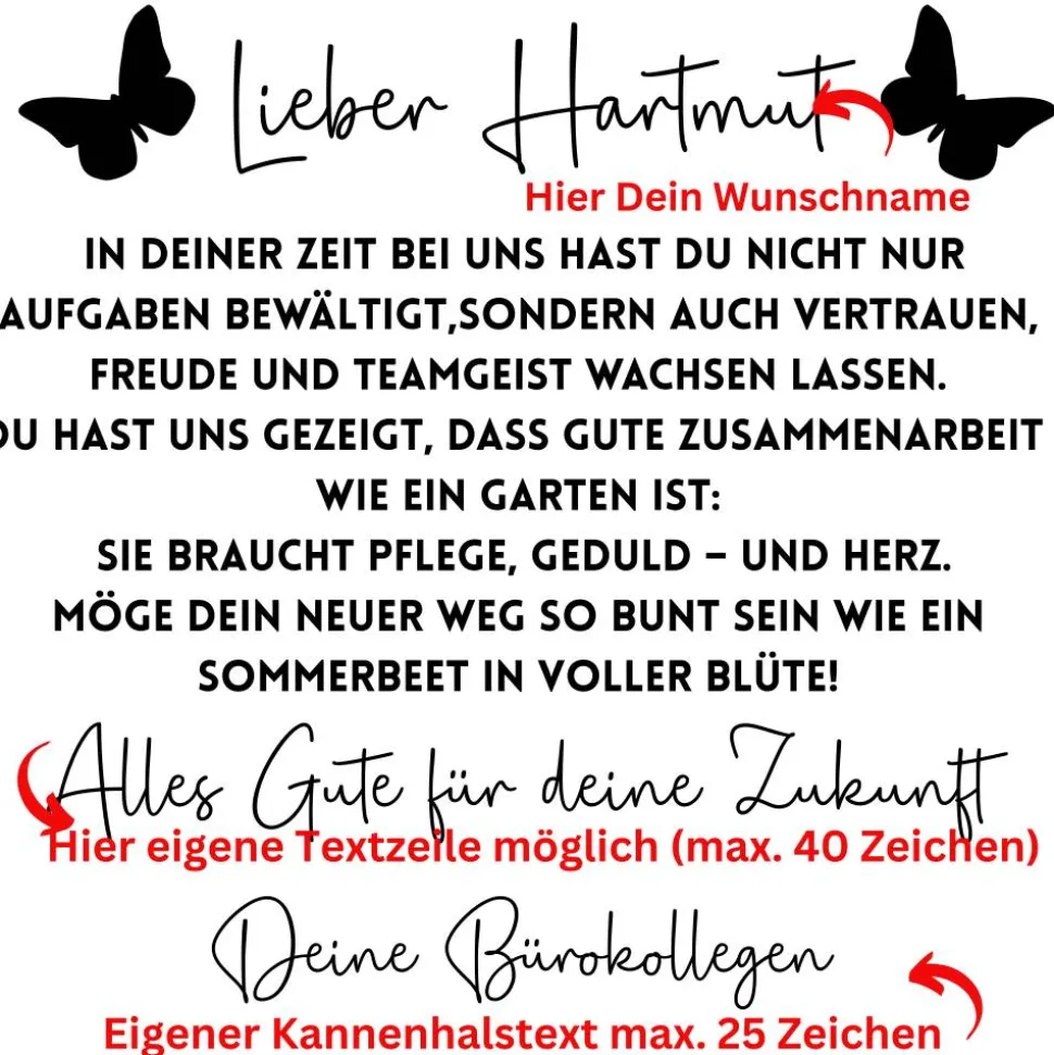 Diese Abschieds-Gießkanne ist mehr als nur ein Geschenk – sie ist eine bleibende Erinnerung an gemeinsame Zeit und ein Zeichen echter Wertschätzung.