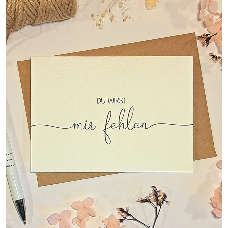 Mit dieser liebevoll gestalteten, minimalistischen Klappkarte zeigst du deinem Kollegen oder deiner Kollegin, wie sehr er oder sie geschätzt und vermisst wird. Auf der Vorderseite steht wahlweise „Du wirst mir fehlen“ oder „Du wirst uns fehlen“ – ideal für den Abschied, Ruhestand, Jobwechsel oder die Pension.
