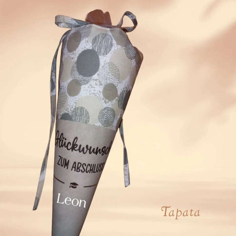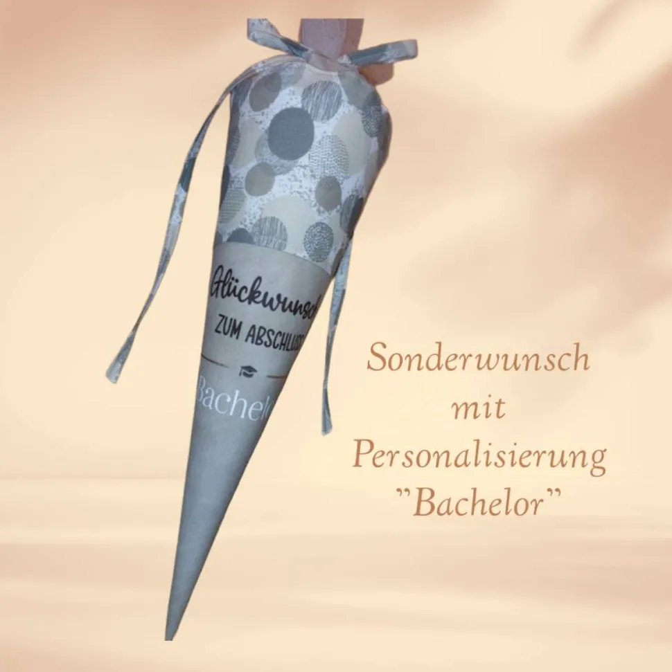Angeboten wird eine kleine Schultüte mit einem passenden Spruch zum Abschluss (Sei es ein Schulabschluss, Abschluss vom Studium etc.).