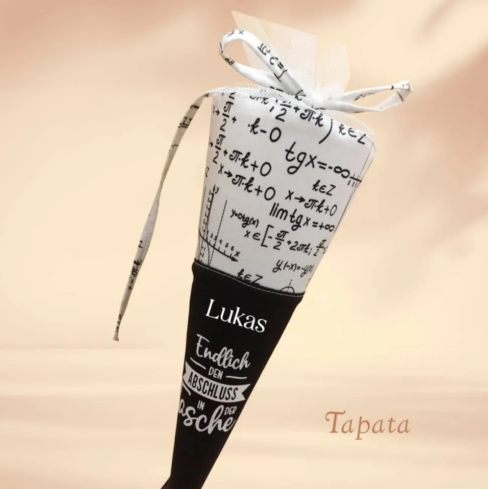 ➡ Namenswunsch: Auf Wunsch kann die Schultüte mit dem Namen oder den Titel (z.B. Dipl., Master oder Bachelor) des Absolventen versehen werden. Bitte geben Sie in das Feld Personalisierungswünsche den Wunschtext ein. Max. 20 Zeichen. Je nach Länge wird die Schriftgröße angepasst.