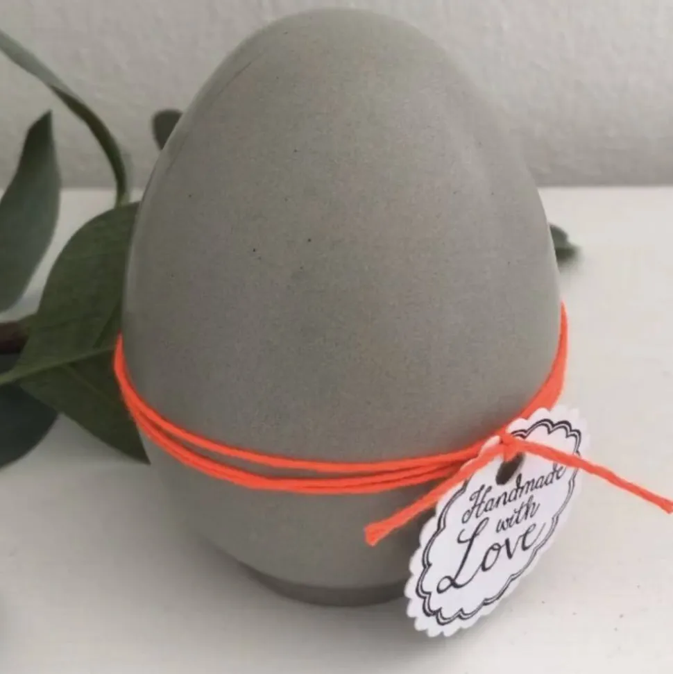 Es ist aus grauem Beton mit Liebe von mir gefertigt und hat eine Abmessung von 8 x 6,5 cm und wiegt ca. 360 g.