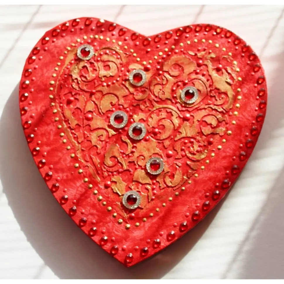 Minibild auf einem herzförmigen Keilrahmen. Tolle Effekte durch die Verwendung von Modelliermasse und Glitzerelementen.