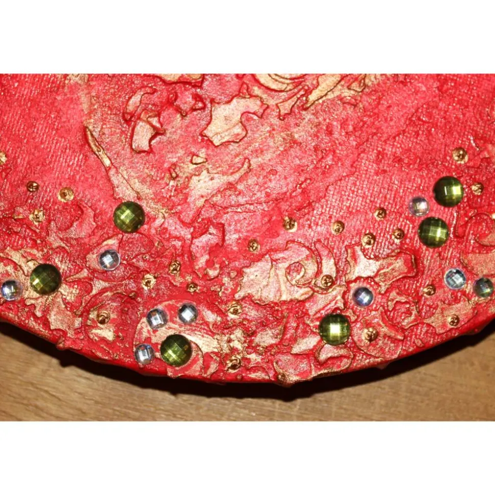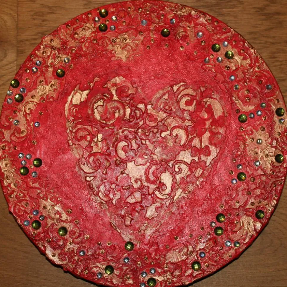 Acrylbild auf einem runden Keilrahmen. Tolle Effekte durch die Verwendung von Modelliermasse und Glitzerelementen.