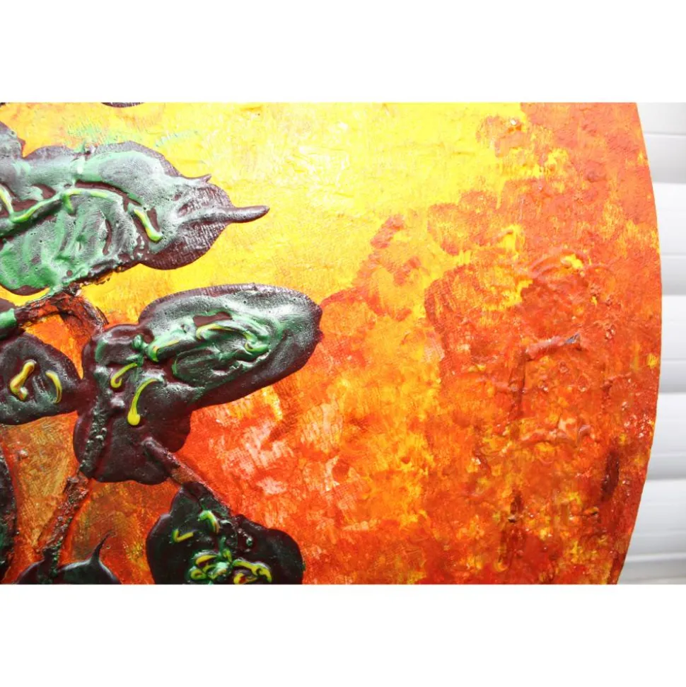Das Acrylbild wurde seitlich auch mit Farbe bearbeitet, kann also ohne zusätzlichen Rahmen hängen.