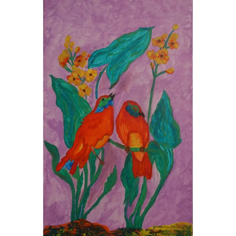 Acrylfarbe auf einem, mit Leinwand bezogenen, Keilrahmen in leuchtenden Farben.