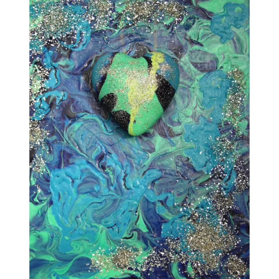 Verwendete Materialien: Acrylfarben, Leinwand, Keilrahmen, Glitter, Styropor