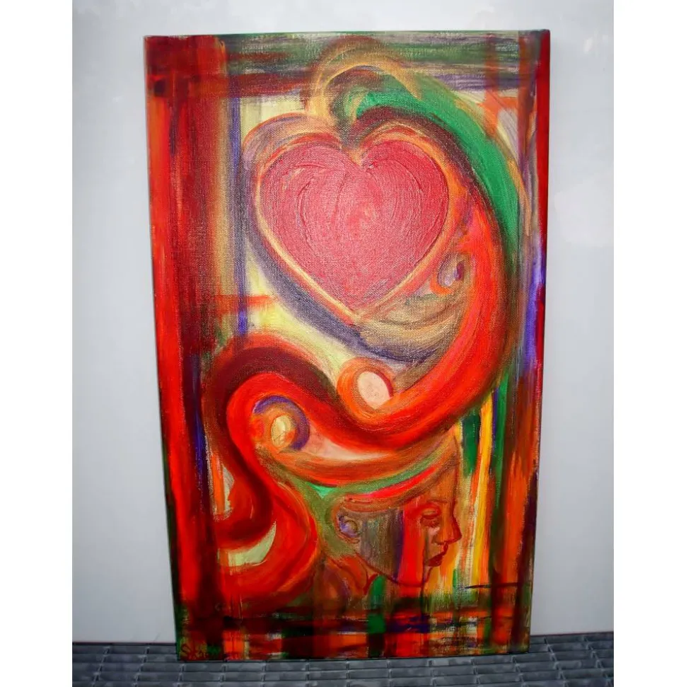 Acrylmalerei auf einem, mit Leinwand bezogenen, Keilrahmen in satten und leuchtenden Farben.