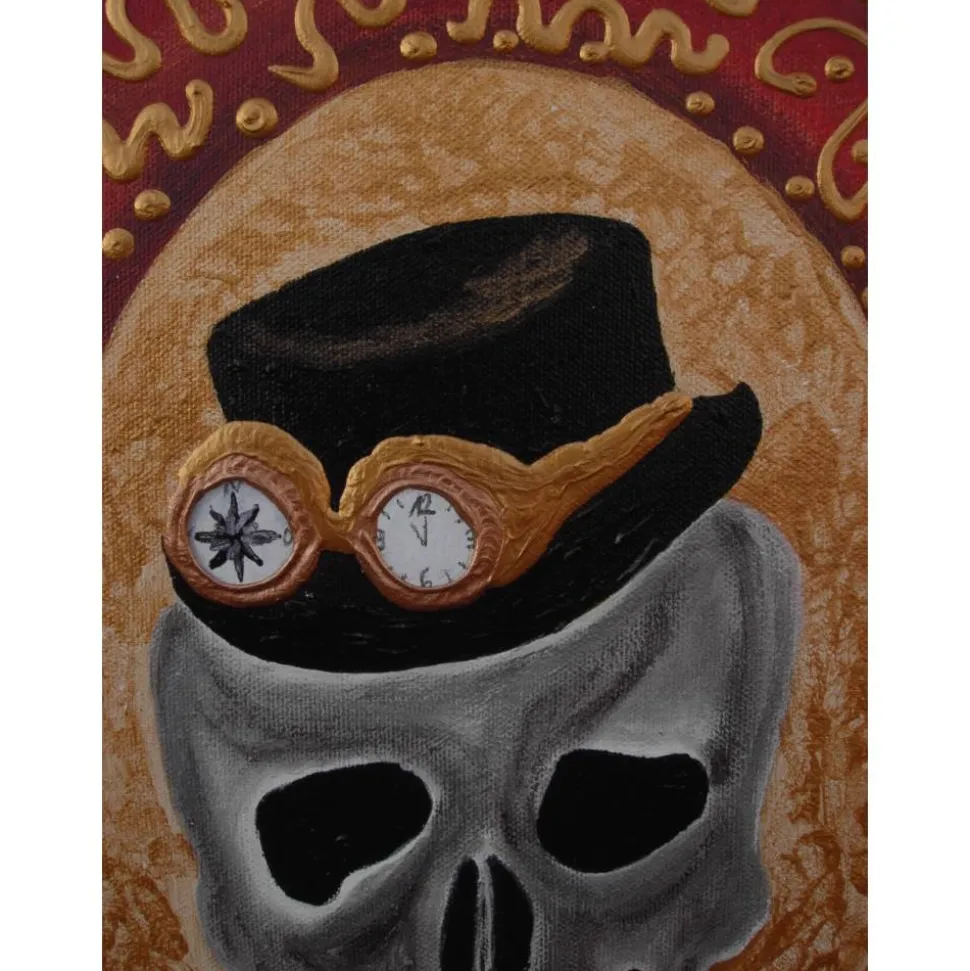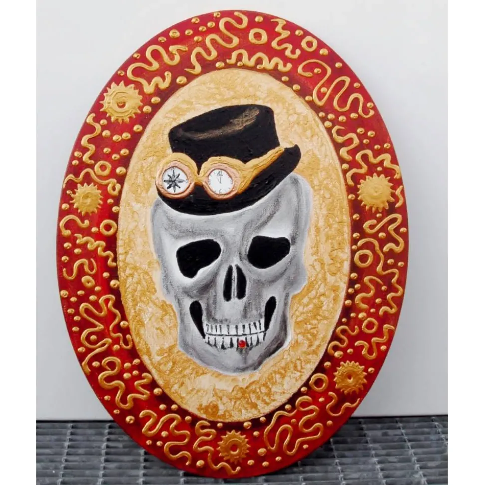 Schön verrückt-gruseliges „Wand-Ei“. Totenkopfbild für Steampunk-Fans oder füt die nächste Halloweendeko.