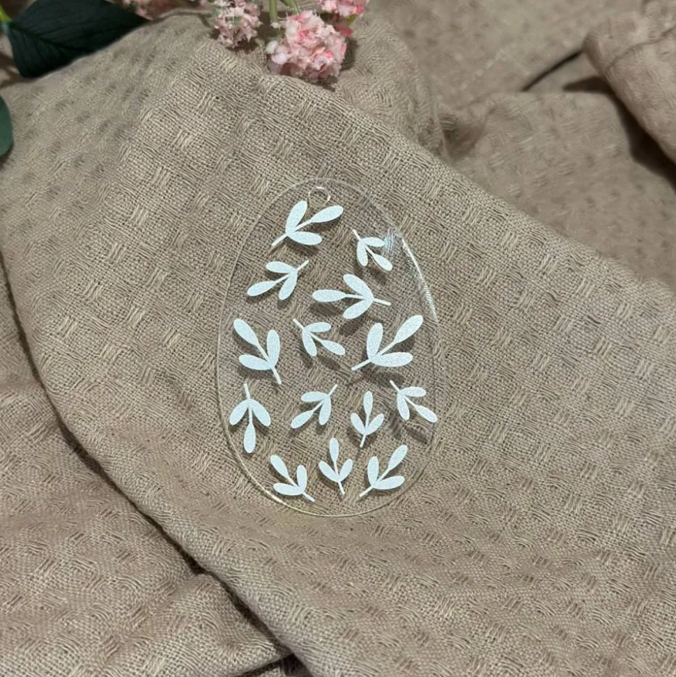 Durch das präzise UV-Druckverfahren bleibt das Blättermuster dauerhaft brillant und kontrastreich. Das Acrylglas ist leicht, aber dennoch robust, sodass du diese Osterdeko jedes Jahr aufs Neue verwenden kannst. Eine kleine Bohrung im oberen Bereich ermöglicht ein einfaches Aufhängen mit einem Band oder einer Schnur – ideal für Fenster, Zweige oder als stilvolles Accessoire für dein Osterarrangement.
