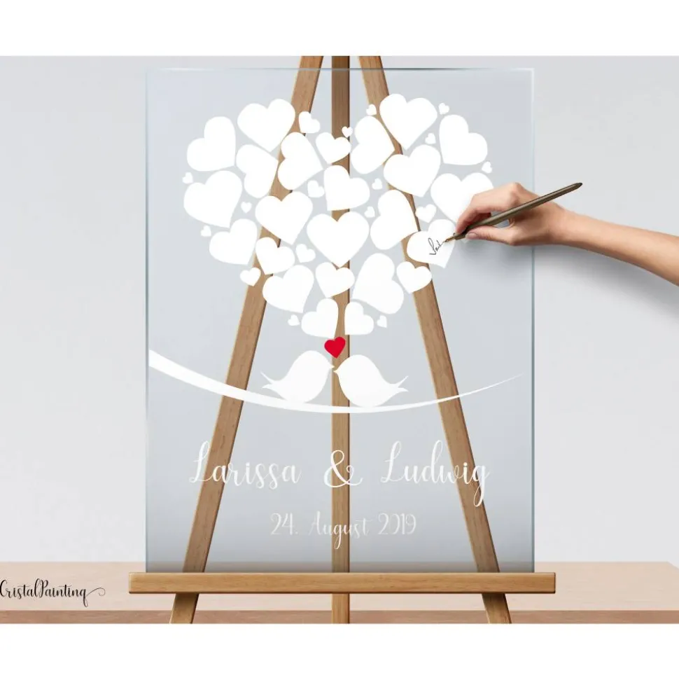 Acrylglas Hochzeitsgästebuch Hochzeitsgeschenk Herz Vogel Gästebuch