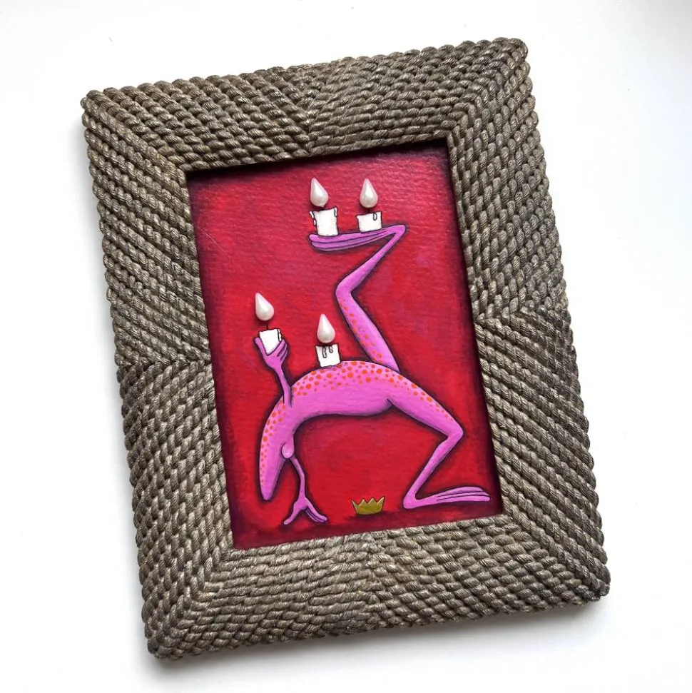 Der Adventsfrosch wurde in Acrylfarben auf hochwertigem Ölmalpapier gemalt und gerahmt. Der wunderschöne Bilderrahmen hat einen Aufhänger sowie einen Aufsteller auf der Rückseite.