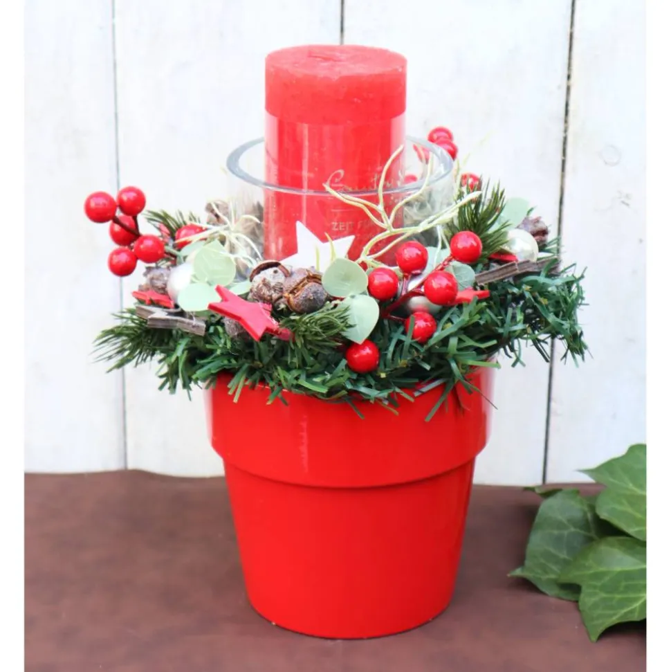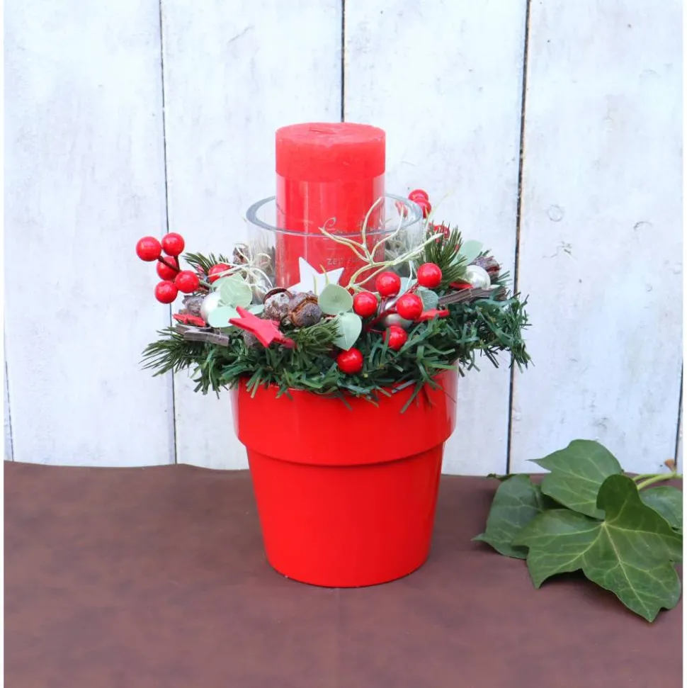 Material: Keramikschale, Kerze, künstliches Grün, Dekorationen, Glas