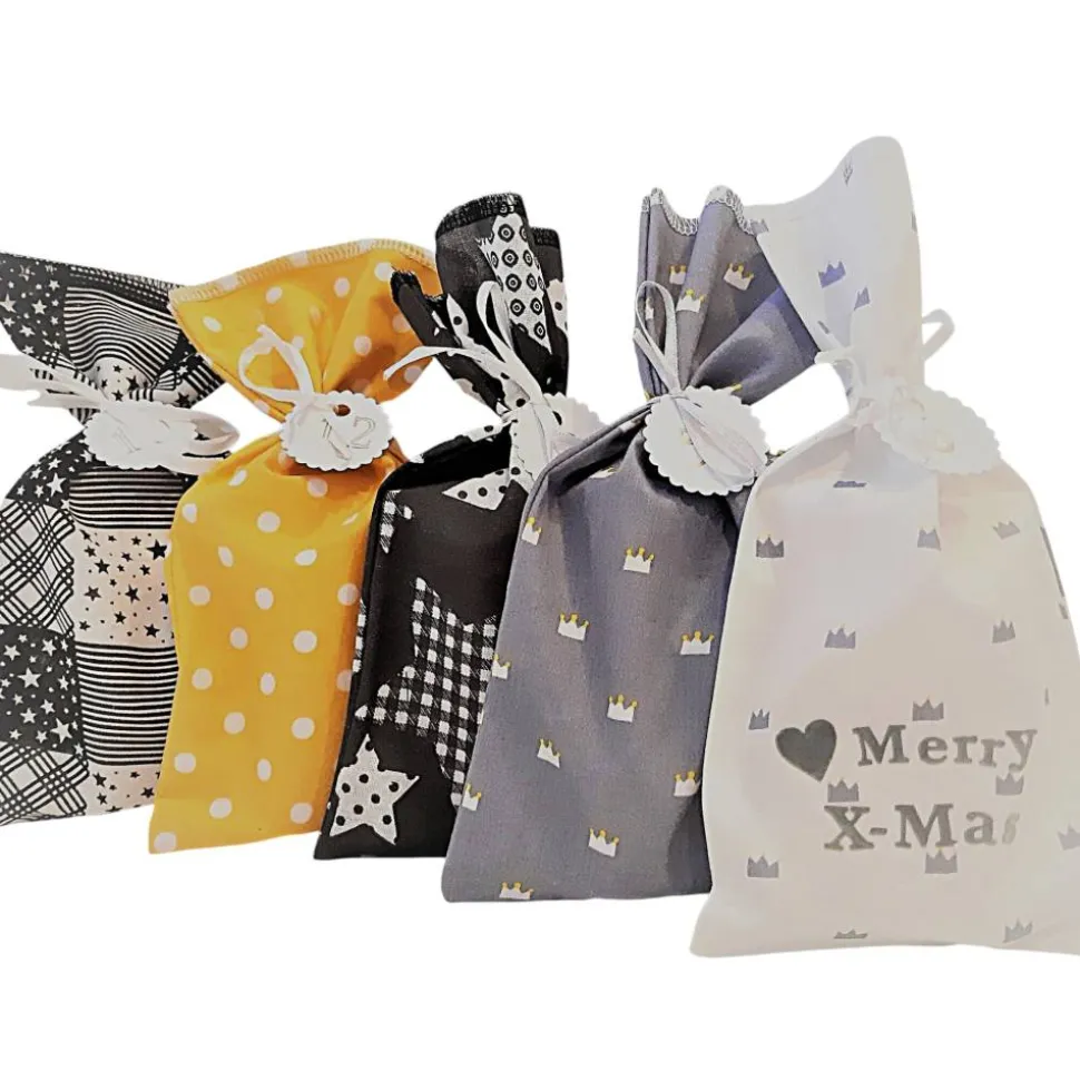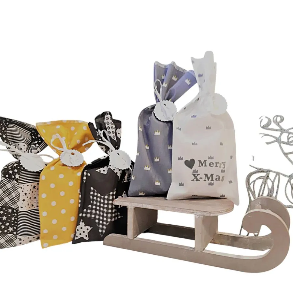 – 4 Säckchen grau mit Sternen Motiven, 100% Baumwolle
