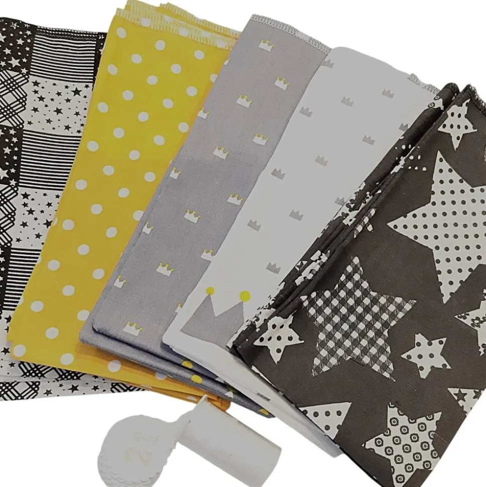 – 4 Säckchen grau mit weißen Krönchen, 100% Baumwolle