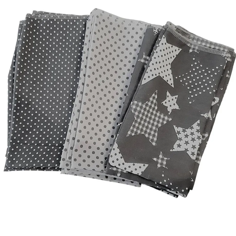 – 8 Säckchen grau mit weißen Punkten, 100% Baumwolle