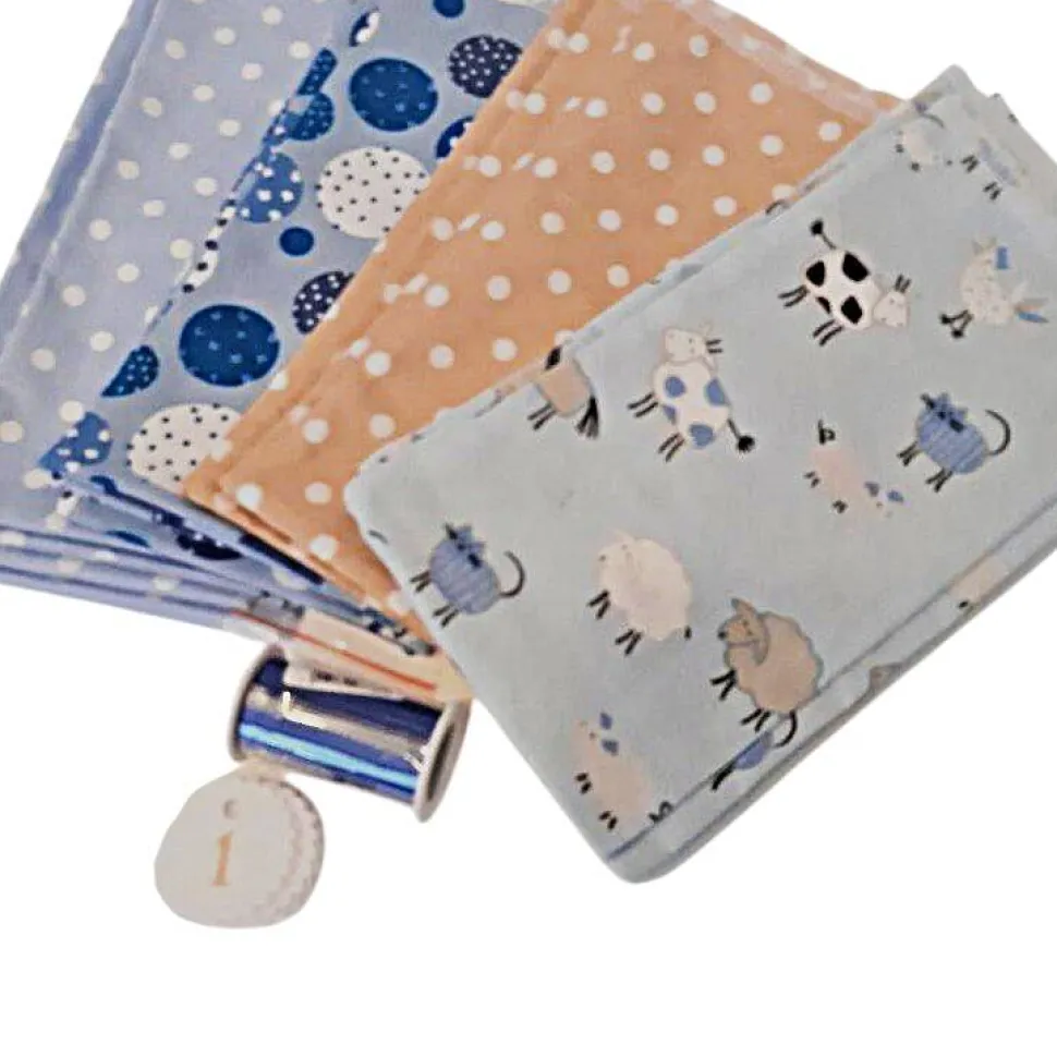 – 6 Säckchen hellblau mit Tier Motiven, 100% Baumwolle