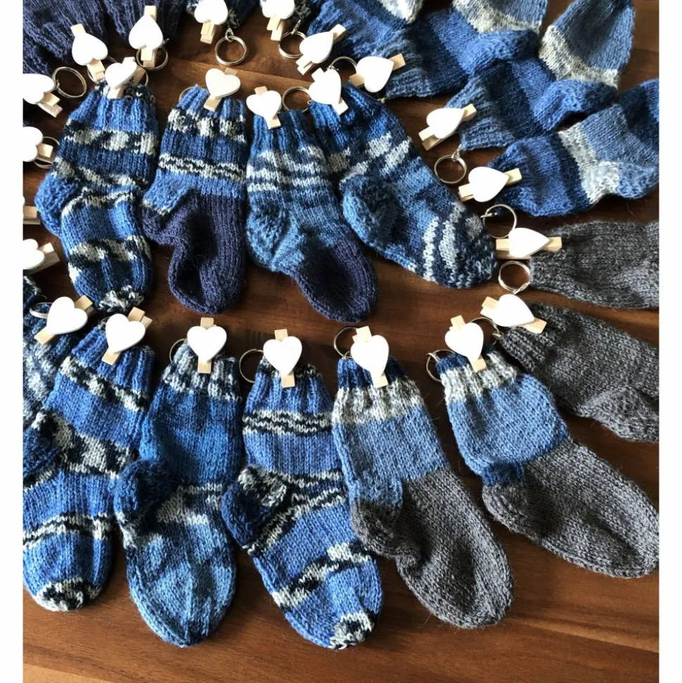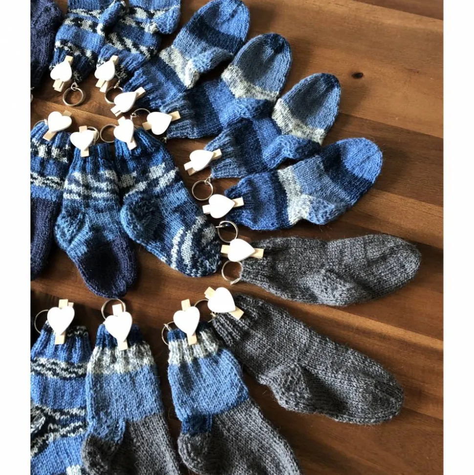 Im Lieferumfang enthalten: 24 Mini-Socken mit Schlüsselring und 24 Wäscheklammern zum beschriften.