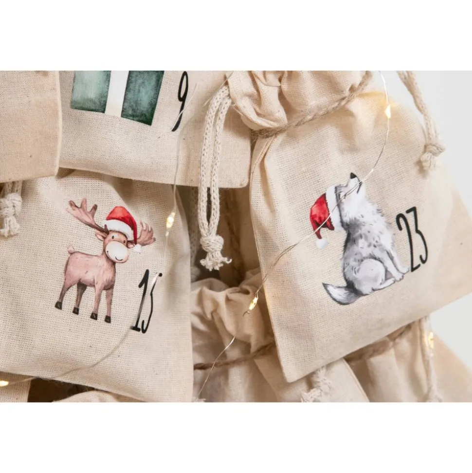 Unsere bedruckten Adventskalender-Beutel aus 100 % Baumwolle bringen jeden Tagkleine Freudemomente. Jedes Säckchen zeigt eine Zahl von 1 bis 24 sowie einzartes Weihnachtstier-Motiv. Die sanften Farben passen wunderbar zurskandinavisch inspirierten, schlichten Weihnachtsdeko.