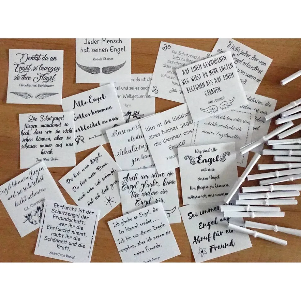 Digital: 2 DinA4-Blätter als PDF-Datei. Die einzelnen geschnittenen einzelnen Botschaften sind ca. 7 x 7 cm groß.