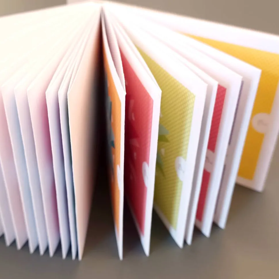 ca. 7 cm breit und 11 cm hoch / 120 g Offsetpapier / oben geleimt / Rückpappe gelocht / mit deutschen Texten