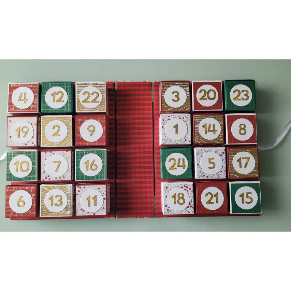 Variante 1: Buchbox mit 24 kleinen Schachteln (ca. 5×5 cm, Höhe 2,5 cm), Design wie auf dem Foto ist 1x verkäuflich, aber ich kann die Buchbox auch gern in einem anderen Design fertigen. (S.Foto mit Designauswahl)