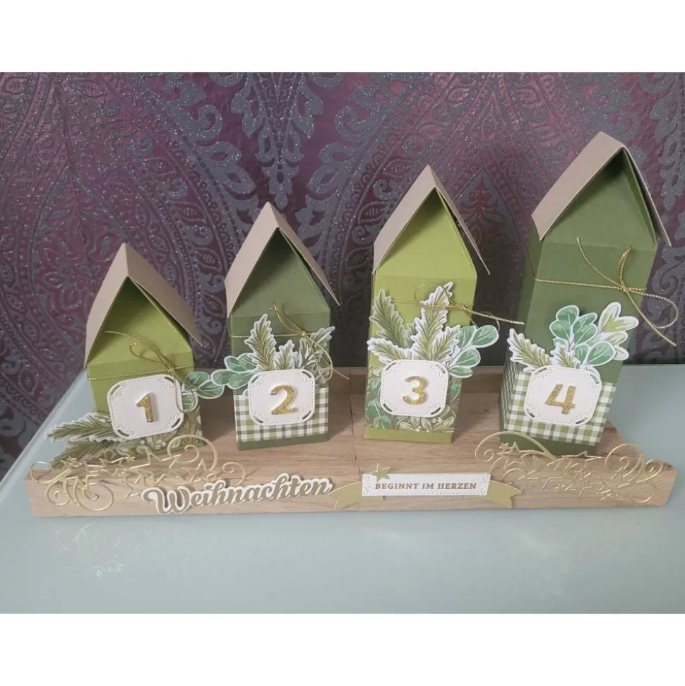 Variante 2: 4 Schachteln in Häuschenform, öffnen und schließen am Dach mit Magnet.