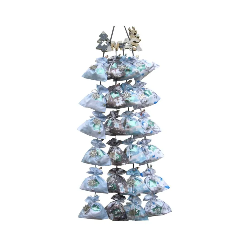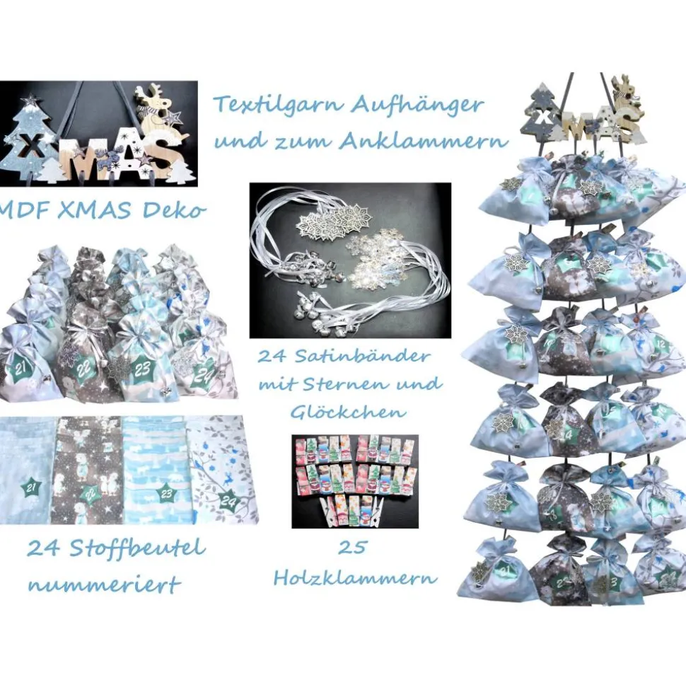 Hochwertige Verarbeitung: Die Säckchen (21 x 19,5 cm) sind aus 100% Baumwolle und alle Säume sind versäubert, damit nichts ausfranst. Sie erhalten 24 silberfarbene Satinbänder zum Verschließen, jedes Band ist mit Stern oder Schneeflocke sowie einem Glöckchen verziert. Die türkisgrün glitzernden Folienstern-Adventszahlen (1–24, wobei 6 und 24 größer sind) machen das Öffnen jedes Tages zu etwas Besonderem.