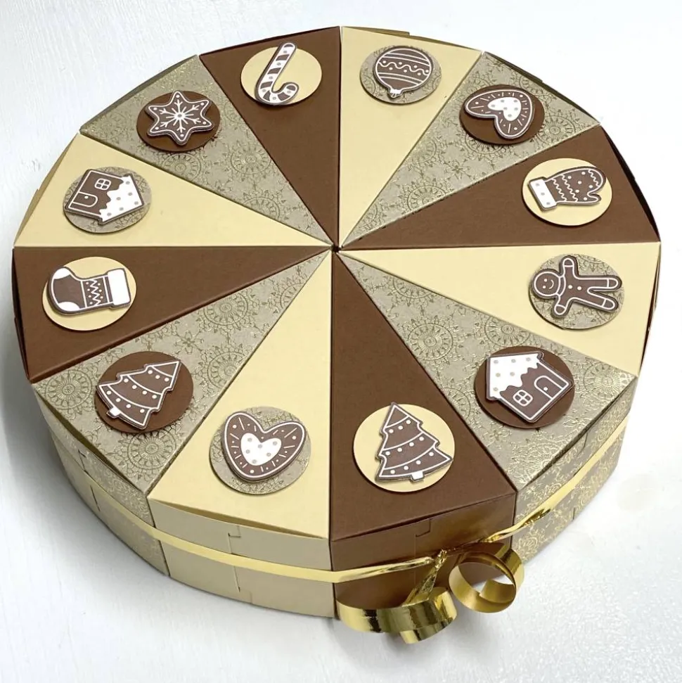 Diese als zweistöckige Torte arrangierte Adventskalender Verpackung ist mit Zahlen von 1 bis 24 versehen, so dass Sie für jeden Tag in der Adventszeit ein separates Geschenkfach haben. Die beiden Stockwerke sind mit einer Band, hübschen Figuren und mit hübschen Motive je nach Thema dekoriert.