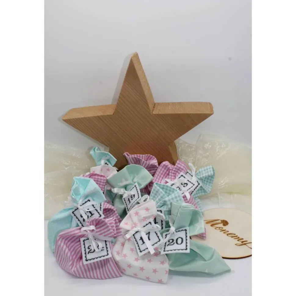 Der Adventskalender ist ohne Inhalt! Die Holzsterne im Hintergrund dienen nur zur Deko und werden nicht verkauft.