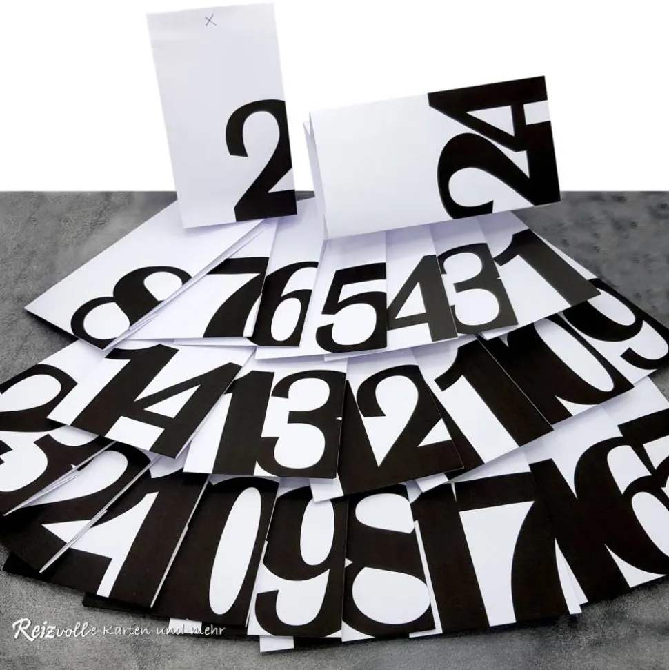 Gestalte deinen individuellen Adventskalender mit diesen 24 handgefertigten Papiertüten, die mit großen schwarzen Zahlen bedruckt sind. Du musst nur noch 24 kleine Geschenke auswählen und in die praktischen Bodenbeutel füllen – schon entsteht blitzschnell ein ansprechender Adventskalender.