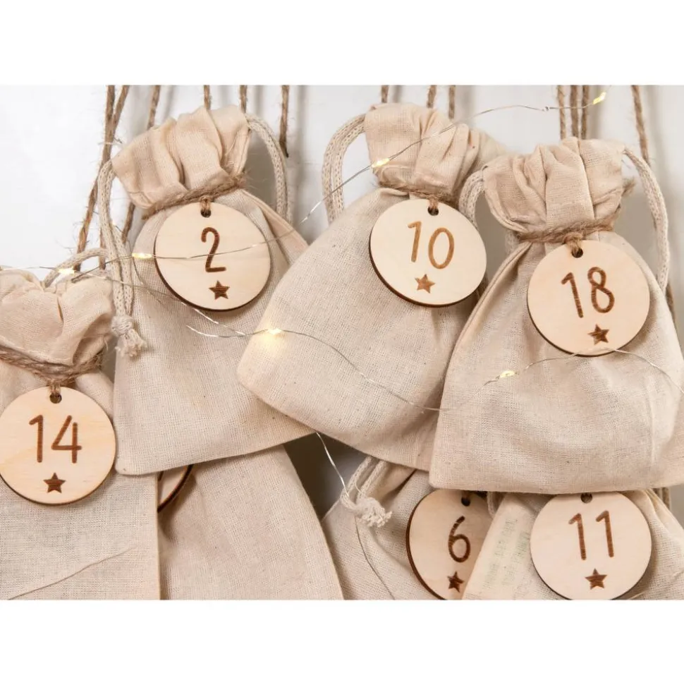 Unsere handgefertigten Adventskalender-Zahlen verwandeln Beutel, Tütchen oderkleine Päckchen in einen ruhigen, stilvollen Kalender. Das Set umfasst dieZiffern 1–24 als runde Anhänger mit lasergravierter Zahl und kleinemStern. Das zeitlose Design passt zu skandinavischen, modernen undklassischen Dekostilen und lässt sich jedes Jahr wiederverwenden.